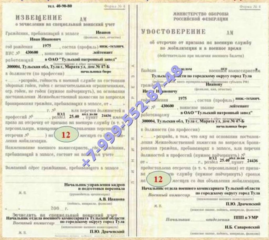 Удостоверение формы 4 в период мобилизации является документом, гарантирующим предоставление отсрочки на определенное время. Заказать удостоверение об отсрочке на военную службу можно у нас.